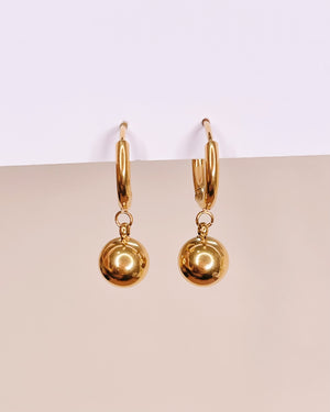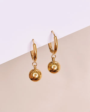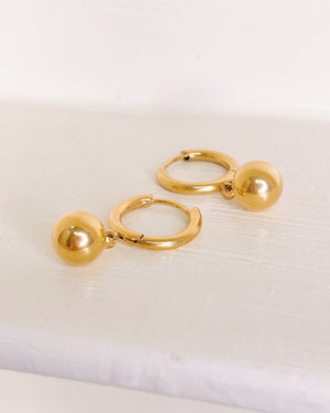 Angelique Solid Ball Dangle Gold Huggies