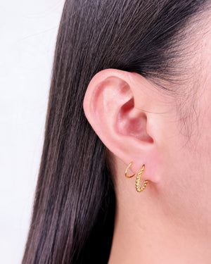 Jenna (Gold) Dual Hoop Twisted Design Spiral Layered Look Huggies