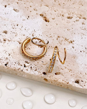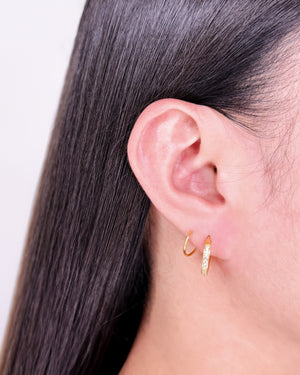 Louise (Gold) Dual Hoop Zircon Paved Spiral Layered Look Huggies