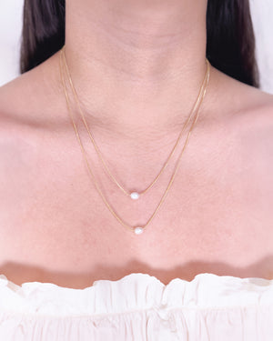 Meredith Double Layer Snake Chain Baroque Freshwater Pearl Pendants Gold Necklace