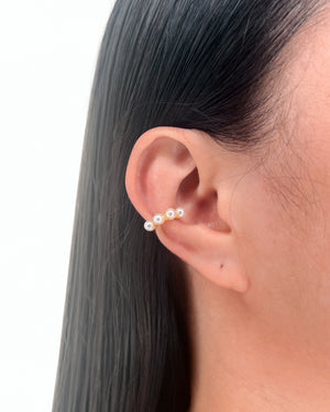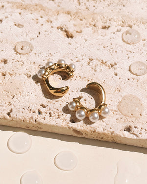 Adalee Crowned Pearls Set Design J-Shaped Gold Cuff Earrings