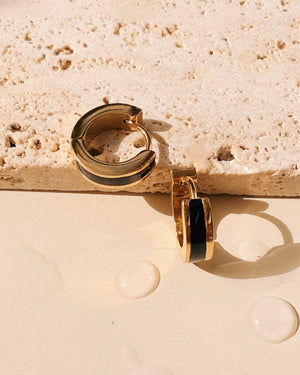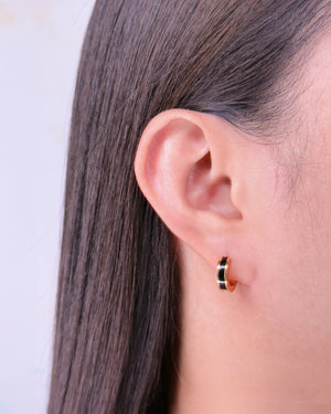 Dahlia (Black) Enamel Center Inlaid Round Gold Huggies