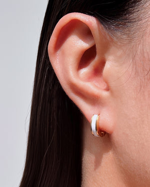 Dahlia (White) Enamel Center Inlaid Round Gold Huggies