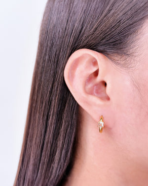 Darcelle Classic Round Huggies Square Shaped Zircon Crowned Set Inlaid Middle Design Gold Huggies