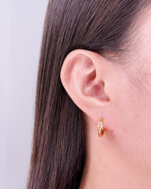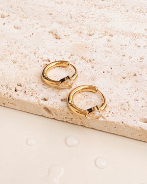 Deedee Classic Round Huggies Teardrop Waterdrop Shaped Zircon Crowned Set Inlaid Middle Design Gold Huggies