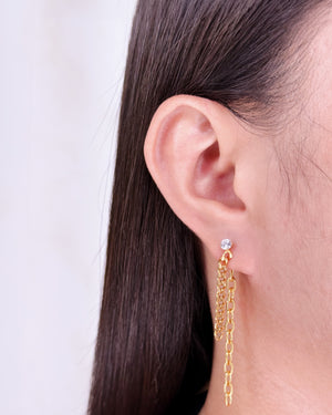 Dorreen Two Chain Design Short Cuban Chain Long Curb Chain Gold Drop Earrings