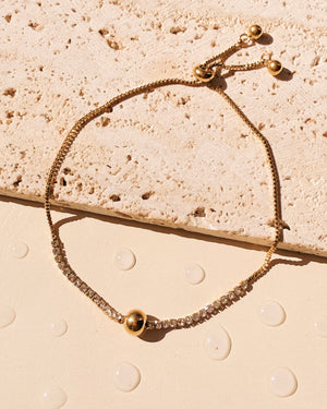 Gracelynn Zircon Rounded Tennis Chain Round Ball Bead Centerpiece Pull Adjustable Lock Design Gold Bracelet