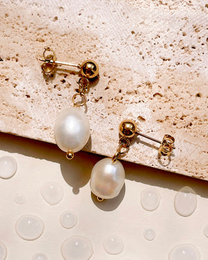 Lorelei Round Stud Baroque Freshwater Pearl Drop Earrings