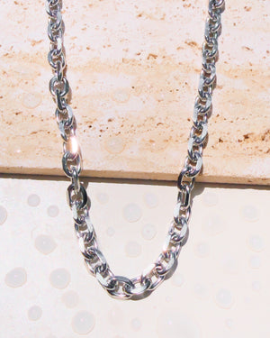 Lourdes (Silver) Thick Oval Faceted Link Chain Design (Chain Only) Necklace