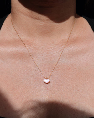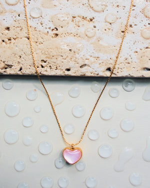 Lucinda Pink Shell Stone Puffy Heart Pendant Anchor Chain Gold Necklace