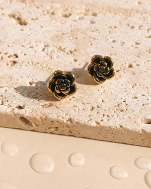 Rosamund Carved Rose Flower Dainty Gold Stud Earrings