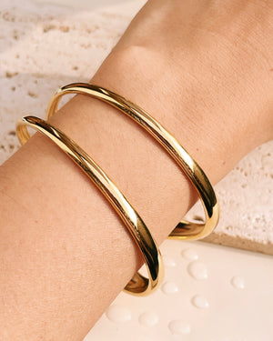Our jewelry is crafted from high-quality stainless steel and features a gold PVD coating. This coating is 10x more durable than typical gold or silver plating, making our pieces waterproof.