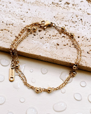 Erica Double Layer Ball Beaded Thin Curb Chain Gold Bracelet