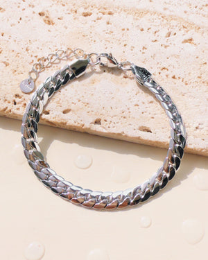 Grayson (Silver) Wide Flat Chunky Cuban Chain Design Bracelet