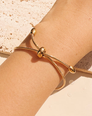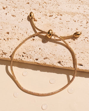 Hillary Thick Rounded Snake Chain Ring Pendant Pull Adjustable Lock Design Gold Bracelet