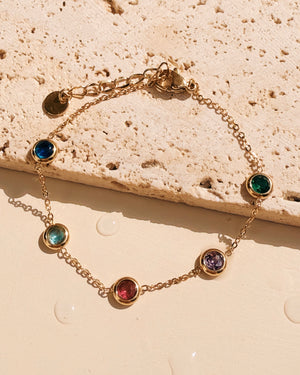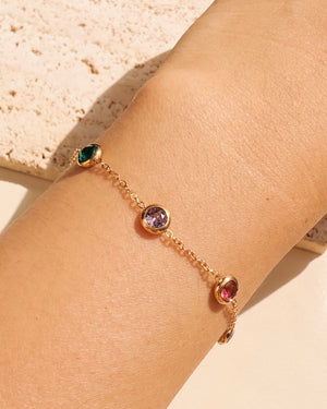 Jolene Multi Color Round Zircon Inlaid Bezel Set Beaded Design Pendant Classic Link Chain Gold Bracelet