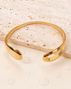 Kenna Flat Teardrop Waterdrop Wide Hollow Center Design Gold Bangle