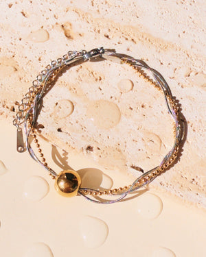 Onyx Two Tone Twisted Triple Layer Silver Snake Chain Gold Ball Beads Chain Round Gold Ball Pendant Bracelet
