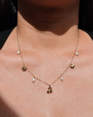 Selah Pearl Beads Heart Beads Pendant Cherry Shaped Center Pendant Oval Link Chain Gold Necklace