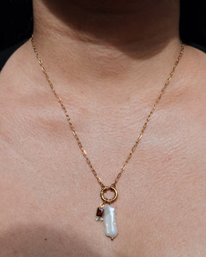 Xara Dainty Zircon Birthstone Pearl Dual Pendant Small Thin Paperclip Chain Necklace