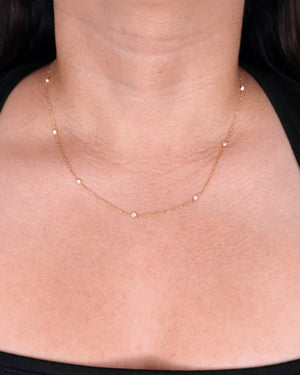 Oprah Round Zircon Inlaid Bezel Set Beaded Classic Link Chain Design (Chain Only) Gold Necklace