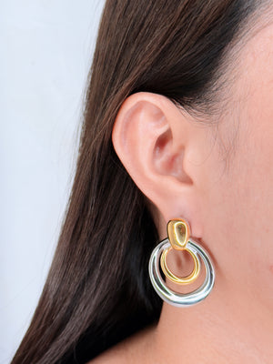 Mira (Two Tone) Double Hollow Ring Small Gold Big Silver Drop Earrings