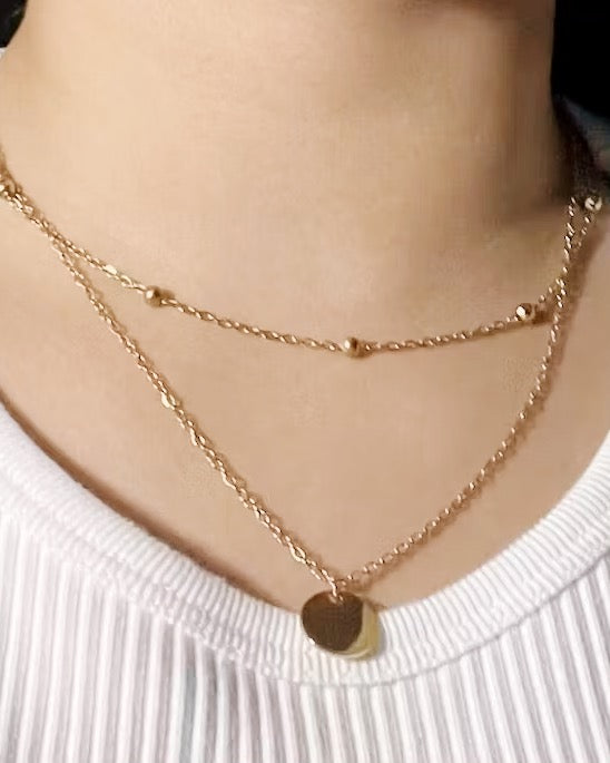 Kyla A. on Nadine Double Layer Beaded Chain Disc Pendant Gold Necklace