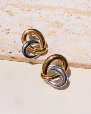 Maricel (Two Tone) Silver Gold Chunky Pretzel Shaped Stud Earrings