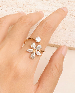 Empress Flower Shaped Crowned Set Zircon Round Zircon Crowned Set Top Center Design Gold Open Ring