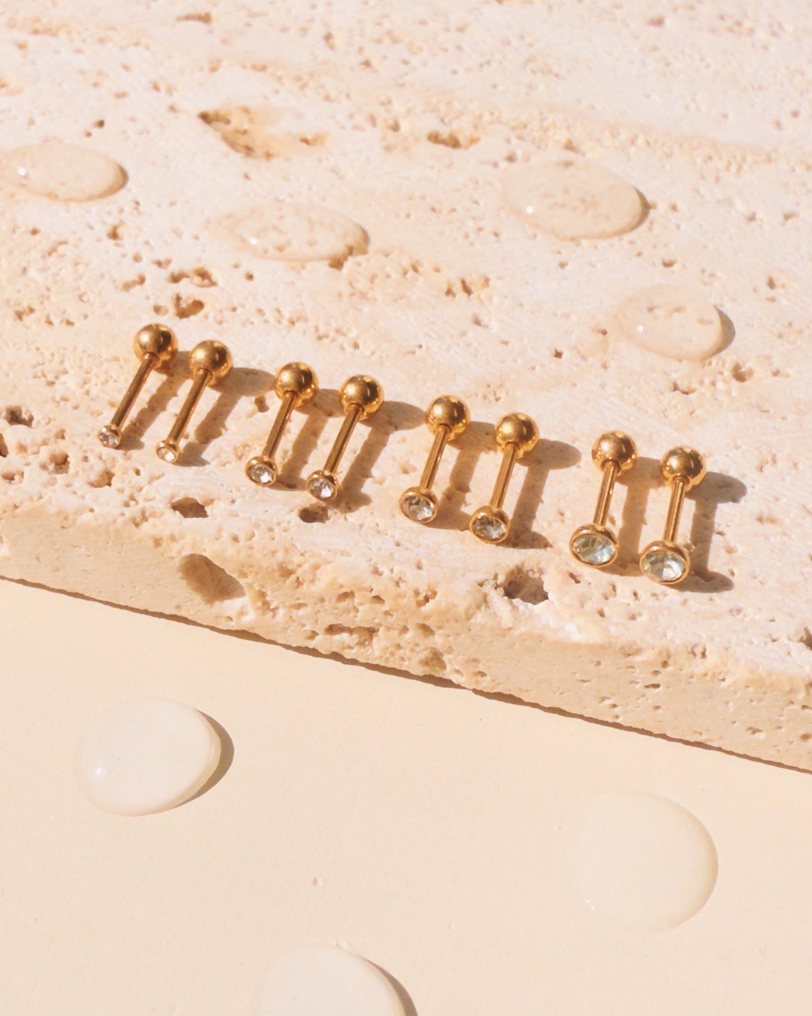 Designed with active little ones in mind, our pieces feature secure flat-back and screw-ball locks, ensuring they stay comfortably in place without poking. Waterproof and non-tarnish, they maintain their brilliance no matter how much your child plays, explores, or bathes.