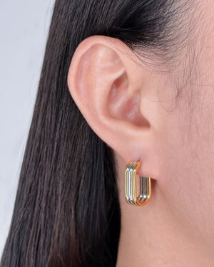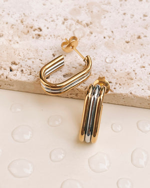 Alma (Two Tone) Stacked Triple Layer Silver Middle Gold J-Shaped Layered Look Hoops