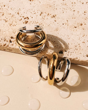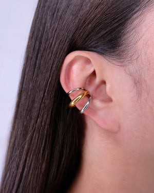Daisy (Two Tone) Three Layer Silver Gold Center Thick Rounded C Shaped Cuff Earrings