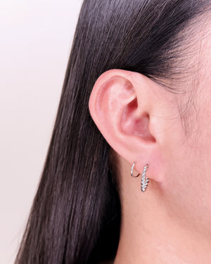 Jenna (Silver) Dual Hoop Twisted Design Spiral Layered Look Huggies