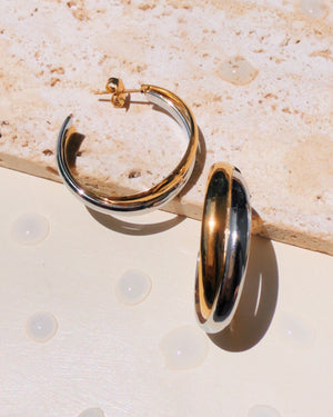 Marigold (Two Tone) Double Layer Stacked Silver Gold Thin Flat Rounded Smooth C-Shaped Hoops