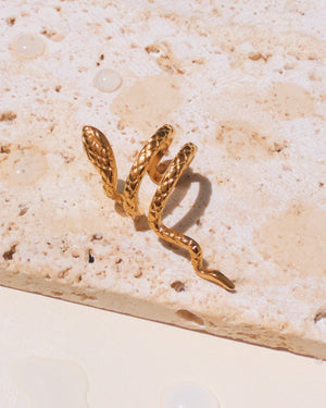 Melissa (Single Piece) Carved Snake Shaped Coiled Design Gold Cuff Earring