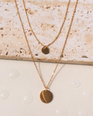 Marion Double Layer Thin Link Chain Round Flat Disc Pendants Gold Necklace
