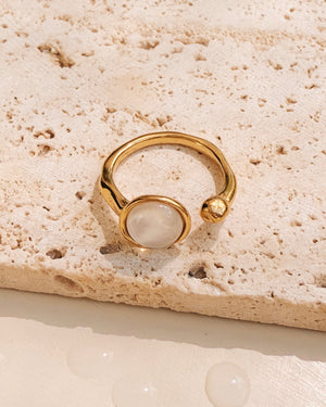 Irvina Dual Top Head Round Flat Inlaid Set Shell Stone Large Tip Design Layered Look Gold Open Ring