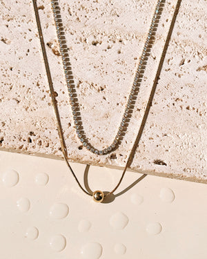 Camelia Double Layer Zircon Tennis Chain Thin Snake Chain Solid Ball Pendant Gold Necklace