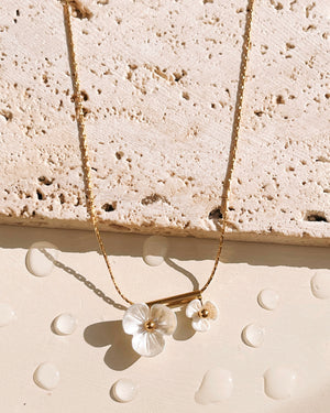 Courtney Shell Stone Flower Shaped Set Bar Pendant Anchor Chain Gold Necklace