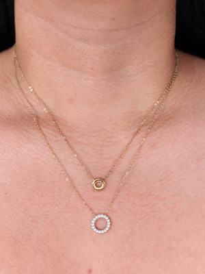 Evette Double Layer Classic Thin Link Chain Dual Zircon Paved Plain Ring Pendants Gold Necklace