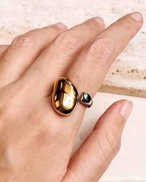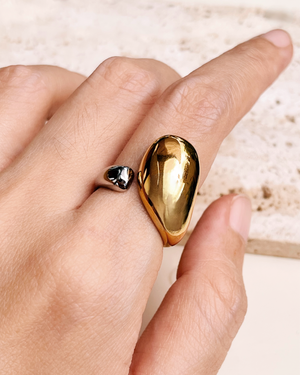 Brittany (Two Tone) Chunky Gold Waterdrop Half Silver Open Ring