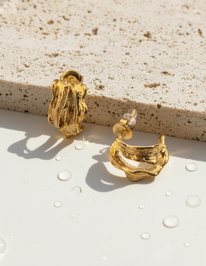 Our jewelry is crafted from high-quality stainless steel and features a gold PVD coating. This coating is 10x more durable than typical gold or silver plating, making our pieces waterproof.