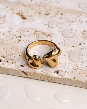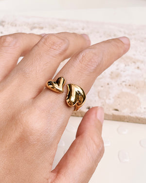Colleen Two Chunky Skewed Hearts Interlocked Design Open Gold Ring