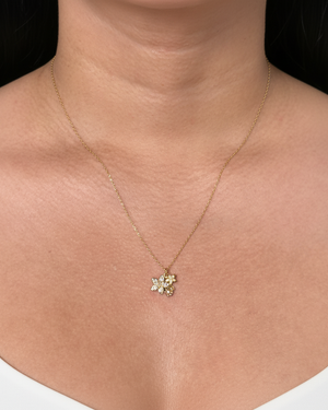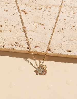 Deryn White Zircon Paved Dual Flowers Pink Zircon Paved Ladybug Shaped Pendants Classic Link Chain Gold Necklace