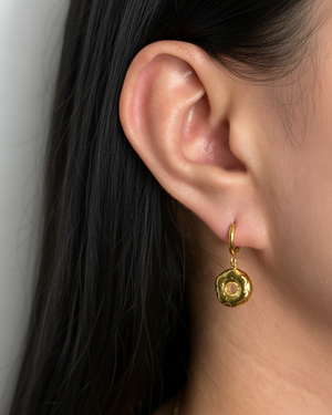 Elvienne Thin Round Huggie Donut Shaped Gold Drop Earrings