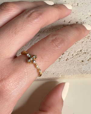 Faline Round Zircon Inlaid Setting Horizontal Cross Design Gold Ring