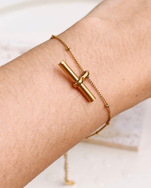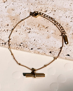 Gianna Minimalist T-Bar Pendant Ball Beaded Link Chain Gold Bracelet / Anklet