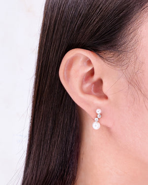 Gina Vine Design Dual Round Zircon Crowned Set Pearls Gold Stud Earrings