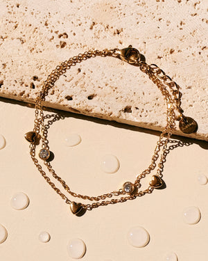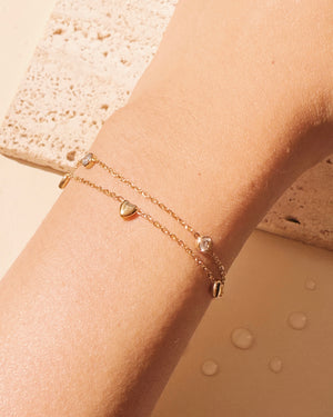 Jovie Double Layer Solid Heart Beaded Round Zircon Inlaid Beaded Classic Link Chain Gold Bracelet