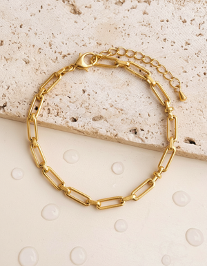 Lorraine (Gold) Rounded Flat Paper Clip Ball Beaded Link Chain Design Bracelet